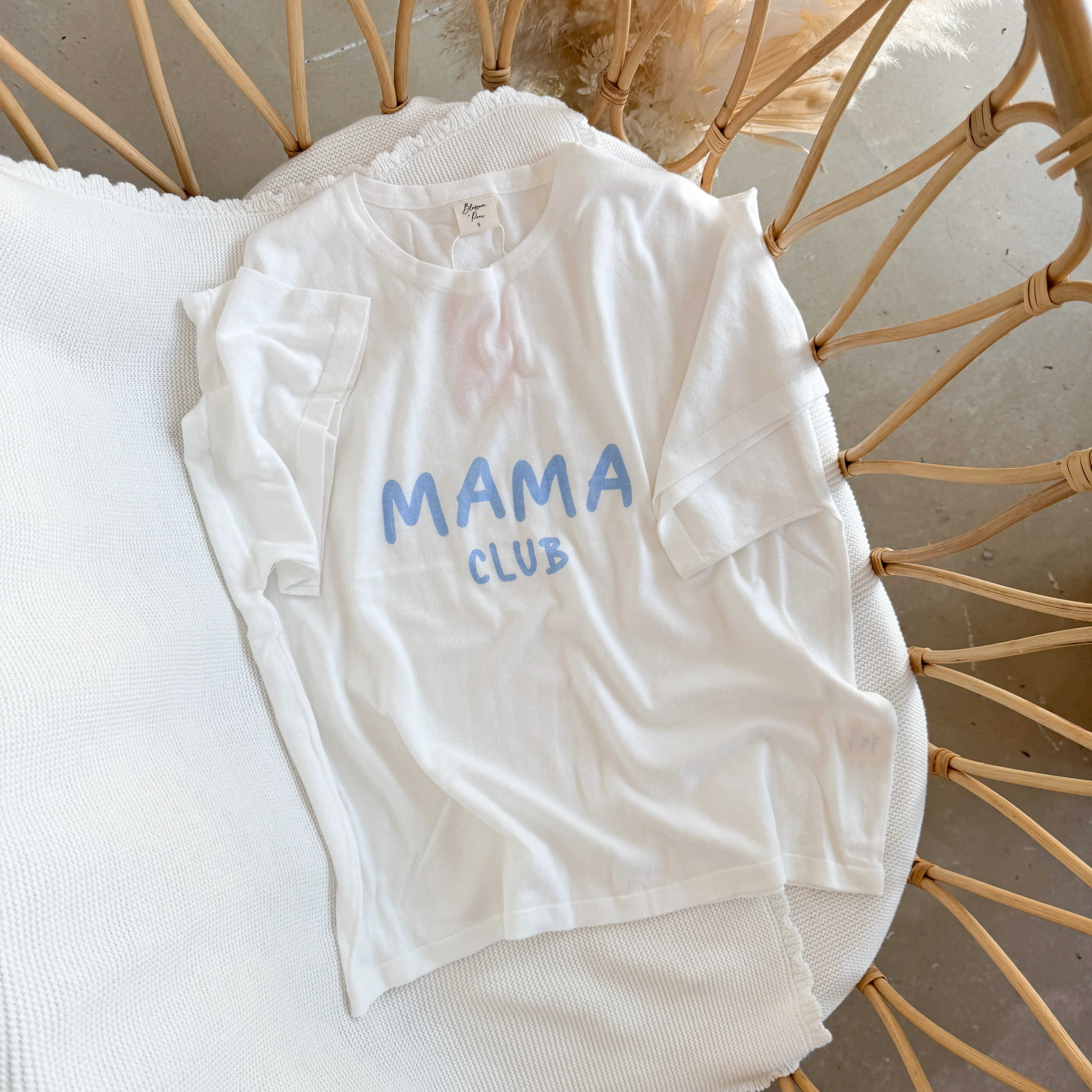 'Mama Club' Tee - White & Blue