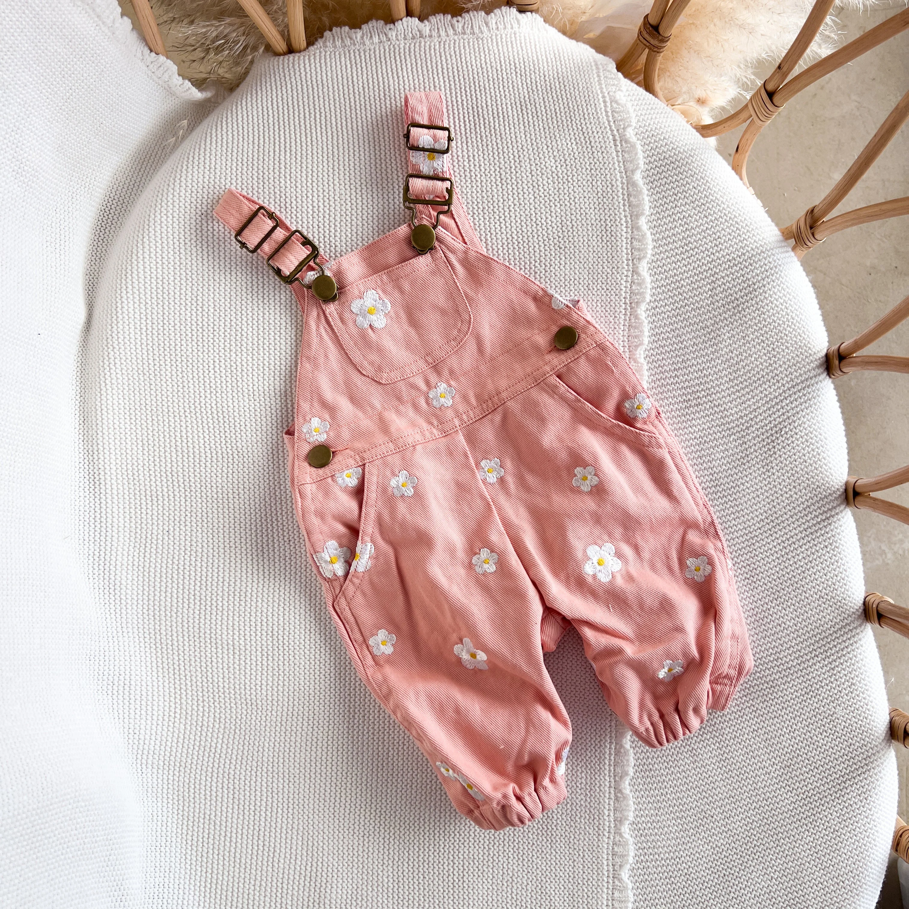 1 x Floral Pink Denim Overalls