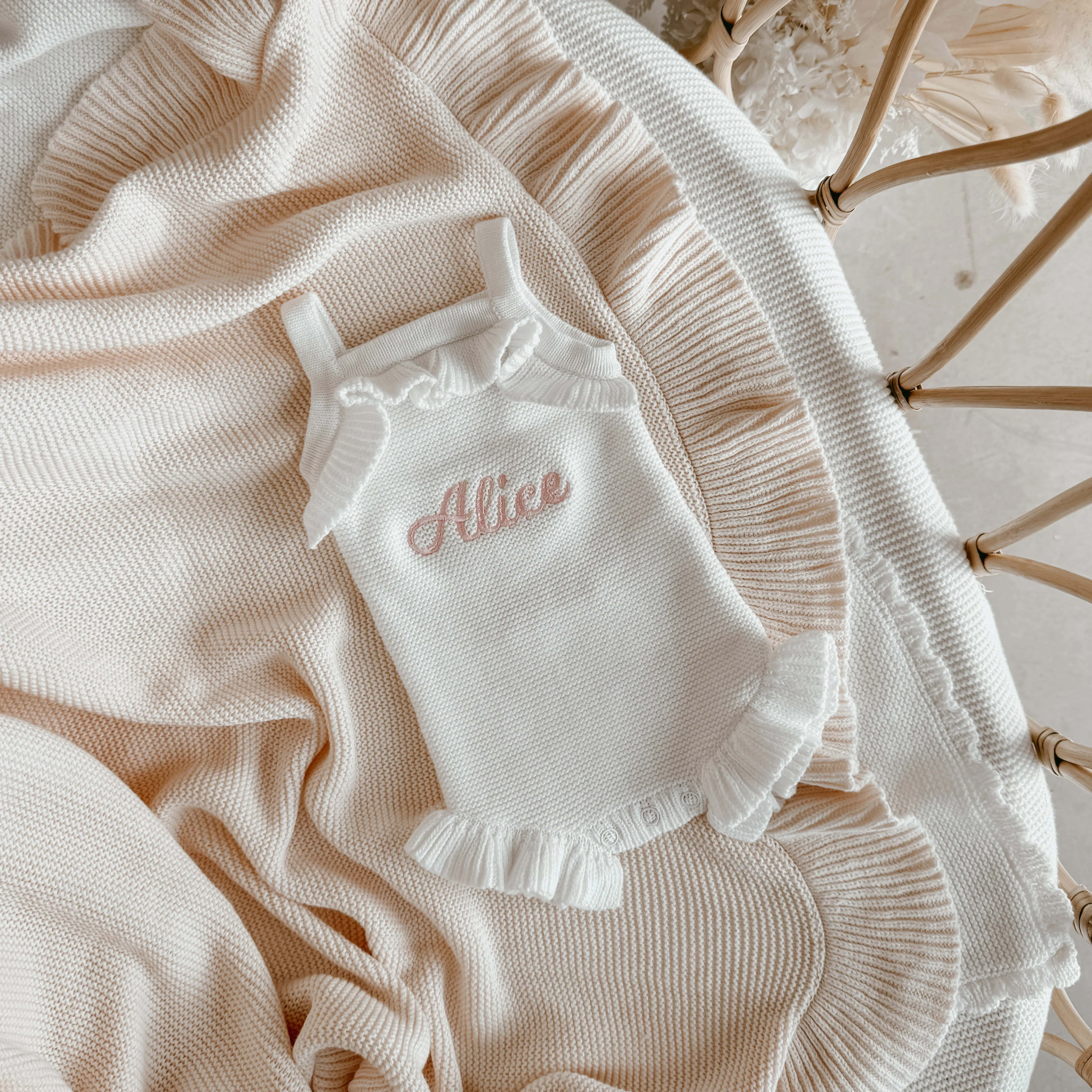 Our beautiful cosy Frill Knit Romper is the perfect piece for your mini this season.