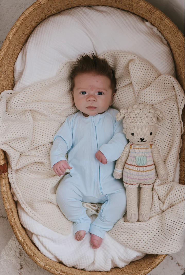 Not only is bamboo luxuriously soft, it also has amazing benefits and qualities. Bamboo is naturally hypoallergenic, ideal for sensitive baby skin. It is breathable and highly absorbent, making for a better night's sleep by keeping moisture away from the body. Keeps you warm in winter and cooler in summer with its ability to thermo-regulate. Snuggle your babe up in our luxurious bamboo pieces.